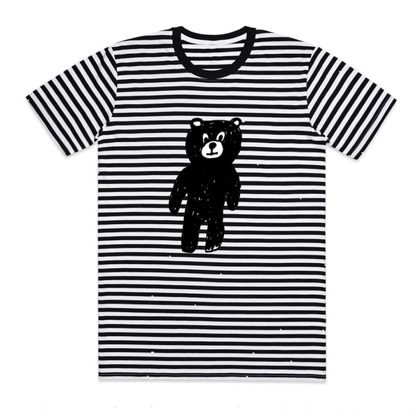 A classic striped T-shirt featuring the Black Bear graphic. Clean, playful, and easy to style; designed for everyday wear with a subtle edge.
